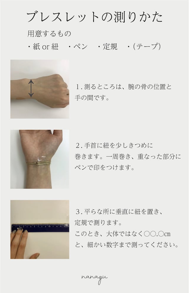 サイズ:お客様の手首のサイズ(長さ)(指定サイズ最大20㎝まで)(20㎝以上をご希望の場合は+別途料金となります。詳しくはお問い合わせください。)